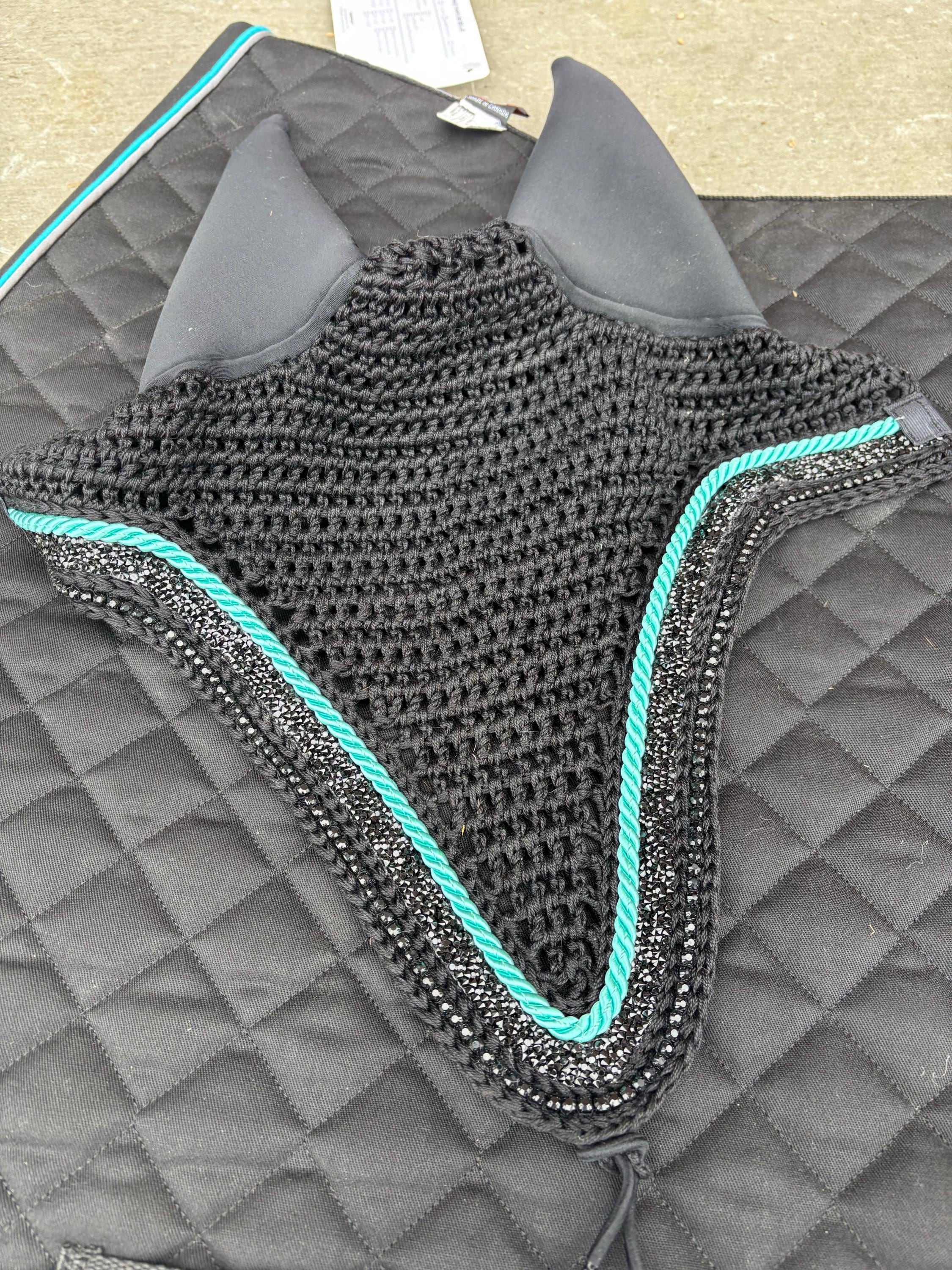 I frequently take custom orders and love to hear your custom requests. Send me a message to inquire about custom sizing and colors. Custom bonnets can be done in a variety of colors and sizes to accommodate your horse's specific needs.
