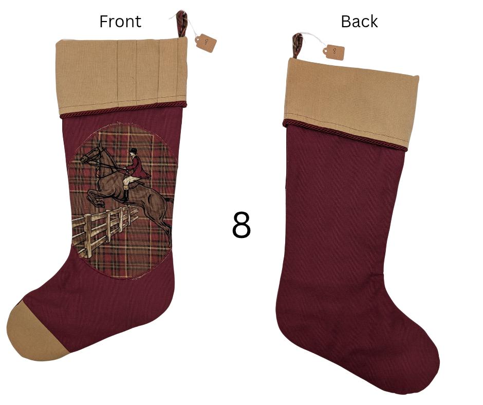 Perfect for the equestrian or fox-hunting enthusiast, these handmade stockings bring timeless charm to your home. Display them for the holidays or enjoy them year-round as a stylish complement to your other equestrian-inspired décor pieces.