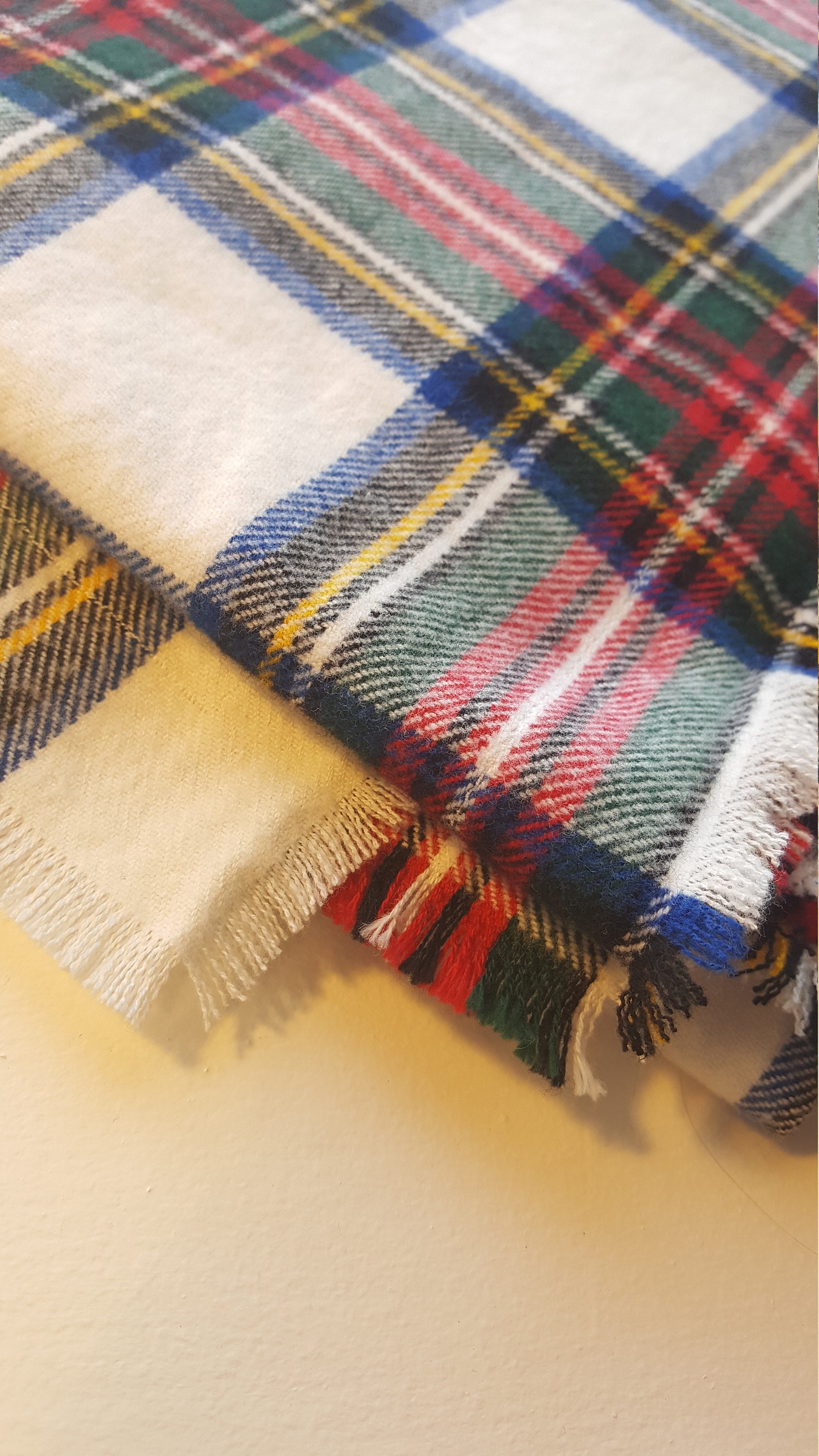 Flannel Blanket Scarves are currently quite the fashion trend and I can see why - they're comfy, warm, and stylish! This blanket scarf is make of a brushed cotton flannel making it super soft and allowing it to drape nicely. The edges have been slightly frayed to provide some personality and a small stitch has been added to each edge to ensure they don't fray past one inch after repeated washings. This item pairs very nicely with the merino wool pompom hats also listed in my shop for the perfect fall or winter gift!